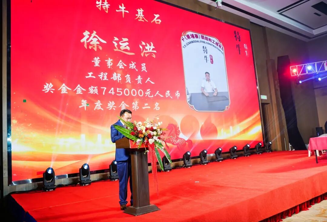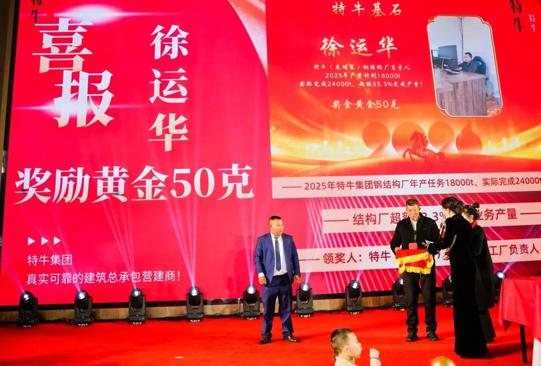 国内市场聚焦新疆,圆满完成多项产业园区与民生工程,从钢筋水泥的浇筑到钢结构的精密安装,从设计方案的反复优化到工程质量的严格把关,每一处细节都彰显特牛“精工筑造”的核心理念,为边疆经济发展与民生改善注入强劲动力。海外市场深耕柬埔寨、肯尼亚,成功交付工业厂房、市政道路、公共设施等多项重点项目,我们不仅输出中国基建标准与核心技术,更通过本土化用工、专业技术培训带动当地就业与技能提升,赢得所在国政府与民众的高度赞誉,持续擦亮“中国建造”的海外名片。同时,集团钢结构加工与核心部件制造同步发力,为海内外工程提供高效配套支持,实现“设计—加工—施工”全链条协同升级。年会上,集团隆重表彰年度杰出合作伙伴、海外开拓先锋、技术标兵、优秀员工及员工家属代表,现场掌声雷动,这是对每一份坚守与付出的最高致敬。